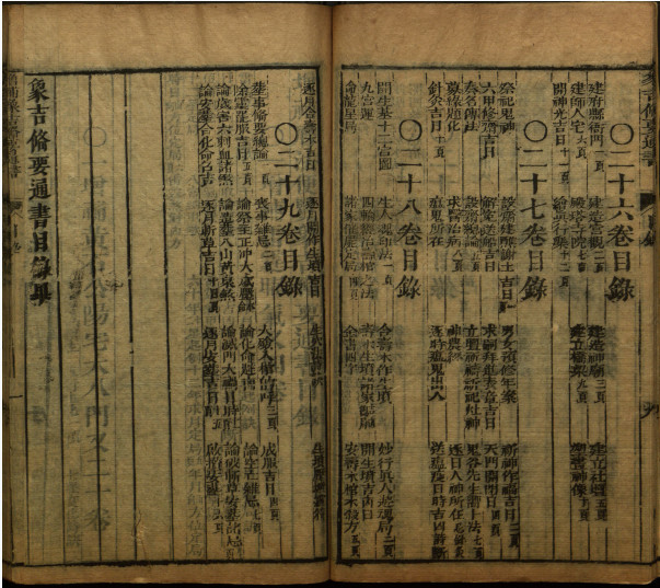 《增补象吉备要通书大全》,今天这个是彩色古版,康熙五十一年刻本,全书总共29卷。
