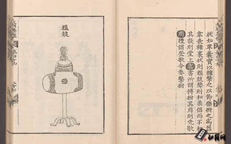 此《大明集礼》由徐一夔等奉勅撰。全书共五十三卷,内容除包括传统的吉、嘉、宾、军、凶五礼,又增加了冠服、车辂、仪仗、卤簿、字学、乐等。此为明洪武三年书修成,嘉靖九年刊行,其内配有大量版画插图,是有关明朝礼仪制度的重要参考书。