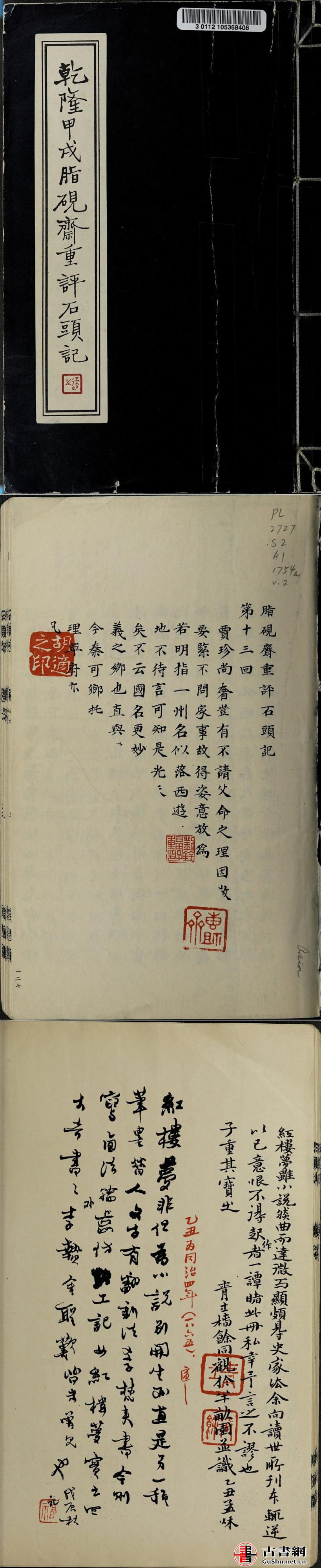 古籍.乾隆甲戌脂砚斋重评石头记. 下册. 清. 曹雪芹著.1961 年胡适影印本丨伊利诺伊大学厄本那-香槟分校藏(图源)