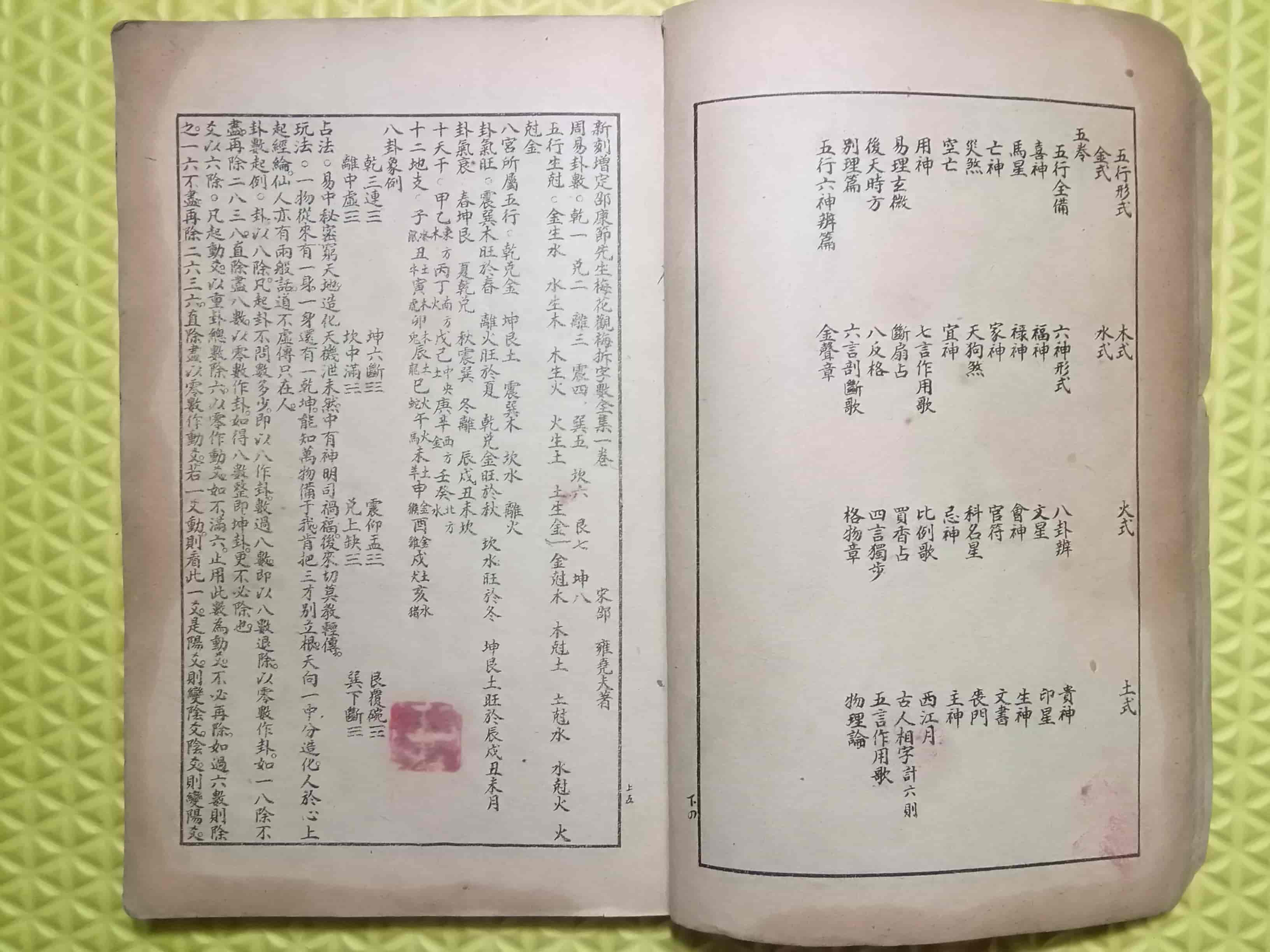 《测字秘诀梅花易数》5卷,民国石印本,又名《新镌增定相字心易梅花数》、《新刻增定邵康节先生梅花观梅拆字数全集》,邵康节先生著,全本共58个双面,合计116页。