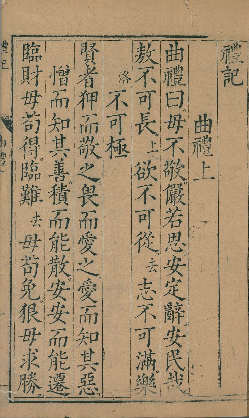 《礼记》亦称《小戴礼记》,共49篇,是先秦到秦汉时期的礼学文献选编。最初为西汉的戴圣所纂,但非出于一时一人之手。戴圣本是今文《仪礼》博士,《仪礼》仅17篇,所记大多为士礼,故汉朝的儒家学者杂采当时能见到的各种文献以为己用。其内容较为驳杂,大致有记述礼节、记述政令、解释《仪礼》、记孔子言论、记述孔门及时人事、礼节考证、通论礼意或学术、记述制度、记述掌故、杂记等十种。东汉时郑玄为之作注,其文字较为通畅易读,流传较广。唐朝时取代《仪礼》的地位。